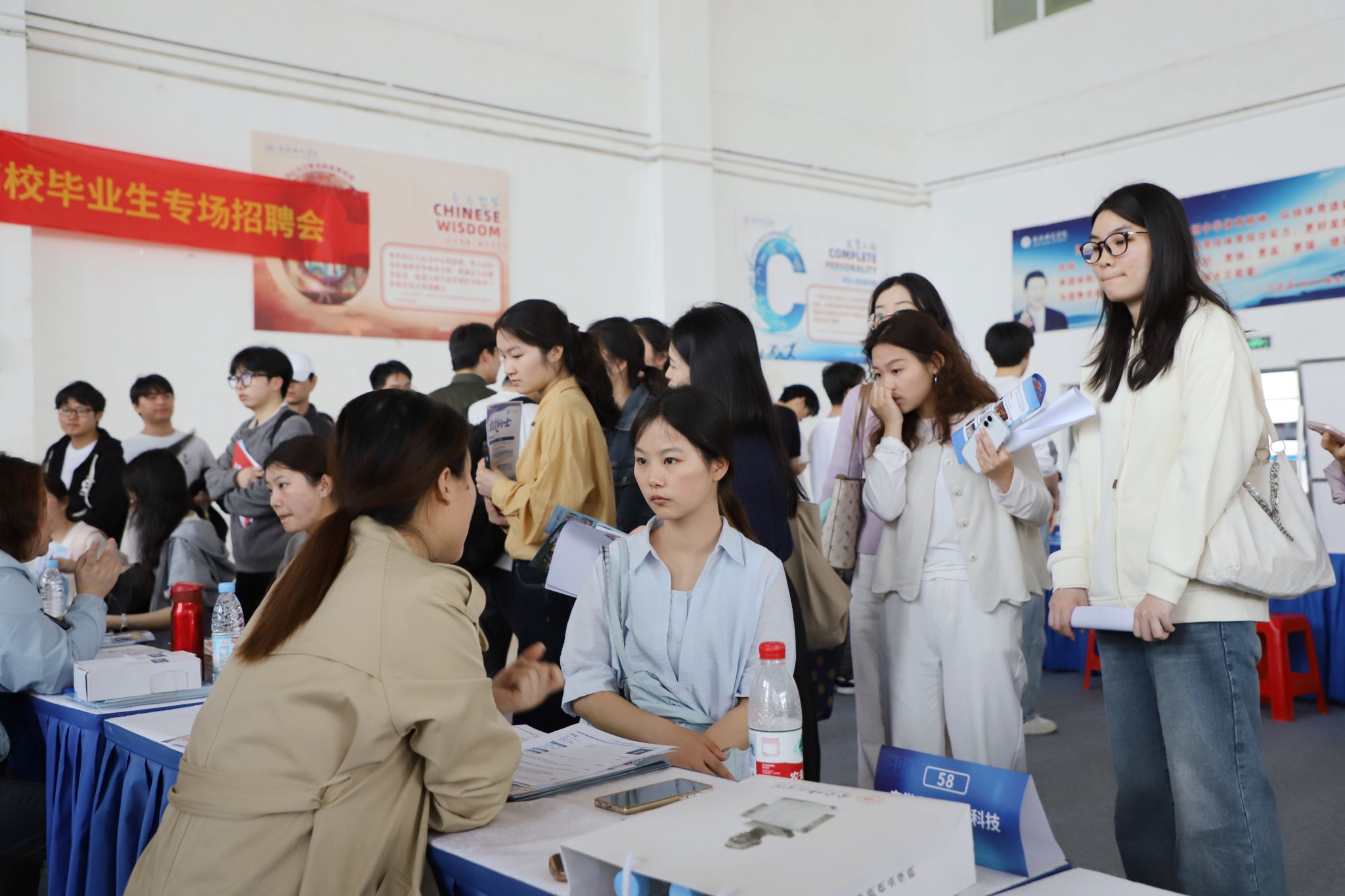 本次招聘会紧扣新质生产力发展导向,精准聚焦新质生产力重点领域人才缺口,定向汇聚适配高校毕业生的优质岗位资源,重点吸纳新一代信息技术、高端装备制造、人工智能、生物医药、新材料、现代服务业等新质生产力相关新兴产业企业参会,实现岗位供给与新质生产力人才需求的精准匹配。据统计,共有124家省内外优质用人单位到场招才引智,累计提供就业岗位近4000个,吸引3000余名毕业生前来参会求职,投递简历数2582份,达成就业意向数876个。同学们手持简历,主动与招聘人员深入沟通,详细了解企业在新质生产力领域的技术优势、岗位专业要求、发展前景等信息,积极投递简历、参与现场面试,在双向选择中找准适配新质生产力发展的职业定位,求职氛围十分热烈。